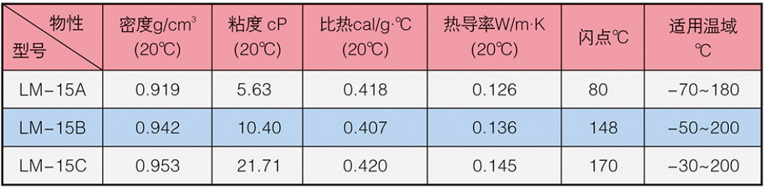 LM-15系列冰河冷媒由聚硅氧烷改性而成。外觀為無色或淺色液體,不溶于水。具有生理惰性、良好的化學(xué)穩(wěn)定性、凝固點低、使用壽命長等特點,對以金屬為代表的眾多材料,幾乎不會產(chǎn)生不良的影響,可應(yīng)用于醫(yī)藥、化工、新能源等領(lǐng)域的制冷系統(tǒng)。