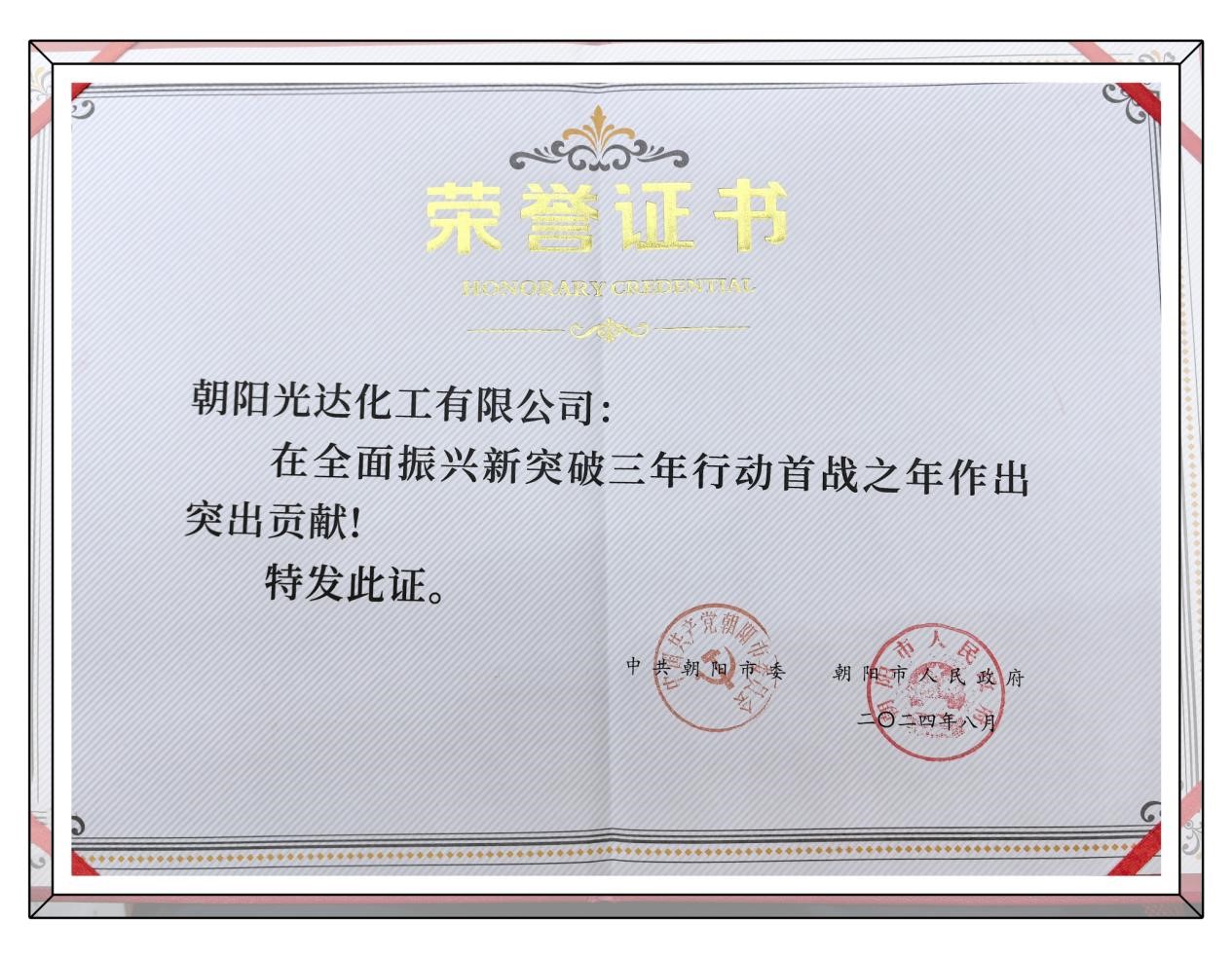 此次表彰不僅是對(duì)光達(dá)化工過(guò)去成績(jī)的認(rèn)可,更是對(duì)其未來(lái)發(fā)展的一種期待。站在新的起點(diǎn)上,光達(dá)化工將以此次表彰為契機(jī),繼續(xù)發(fā)揚(yáng)敢闖敢干的精神,堅(jiān)持高質(zhì)量發(fā)展道路,為朝陽(yáng)市乃至全國(guó)的新型工業(yè)化建設(shè)做出更大貢獻(xiàn)。